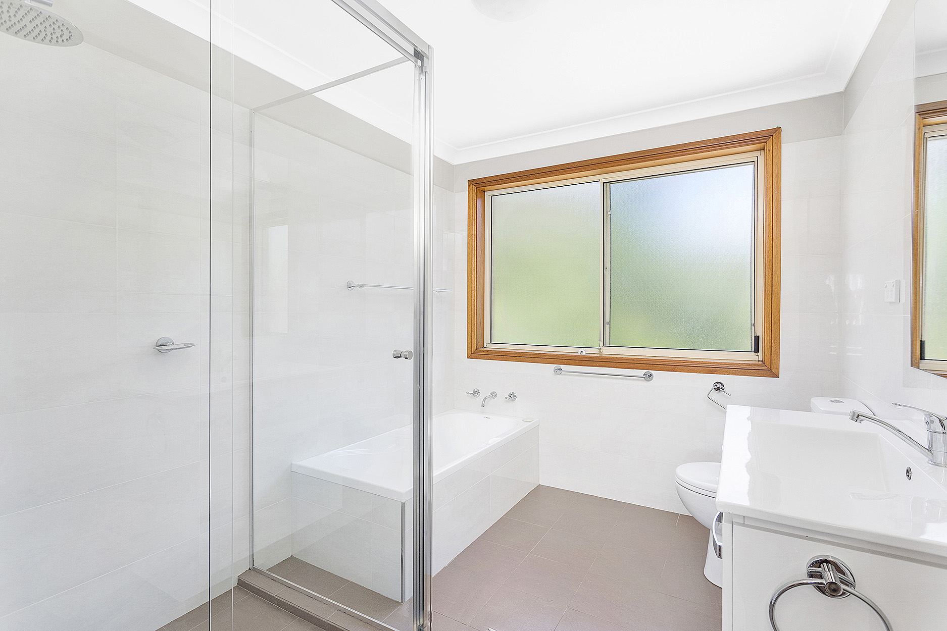 -Fantastic spacious bathroom with new shower, vanity, toilet and shower