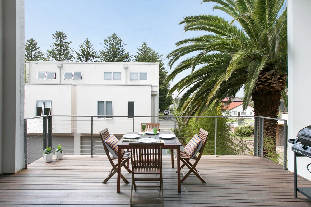 Relax on a massive deck overlooking a lush Date Palm and some Norfolk Pines framing the park below, while sipping a glass of wine and listening to the soothing sounds of the ocean.